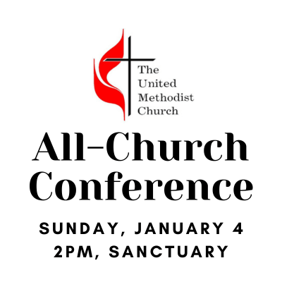 A Special Church Conference has been called and will be convened on Sunday, January 4, at 2pm, in the sanctuary. The meeting will be presided over by our District Superintendent, Rev. Jim Wilson.