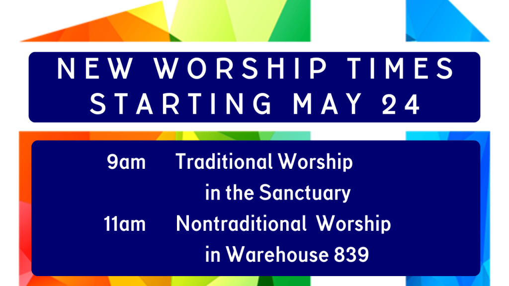 Following the thoughtful work of our Worship Task Force, alongside our Lay Leaders, Interim Pastor Larry Brown, and with the support of incoming Lead Pastor Steve Putka, we will begin a new worship schedule on Pentecost Sunday, May 24.